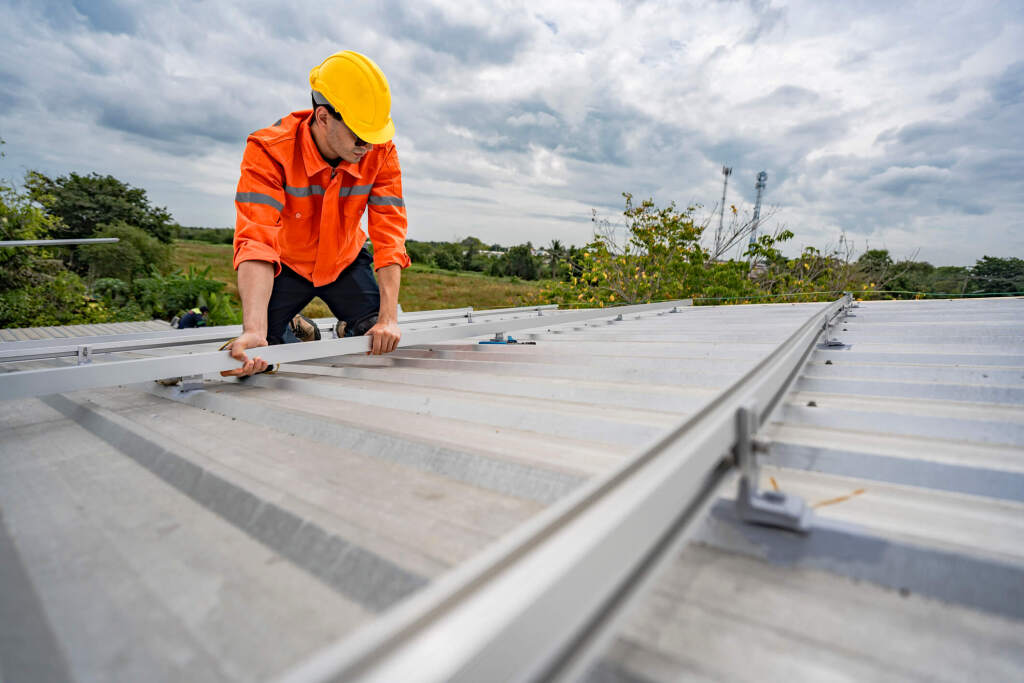 Metal roofing solutions for commercial buildings, offering exceptional durability, energy efficiency, and a lifespan of around 50 years or more.